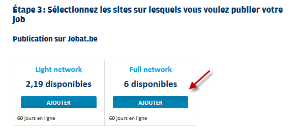 - Si vous avez rempli les champs nécessaires en Etape 1 et éventuellement aussi en Etape 2, vous pouvez sélectionner en Etape 3 un des credits Full Network disponibles.