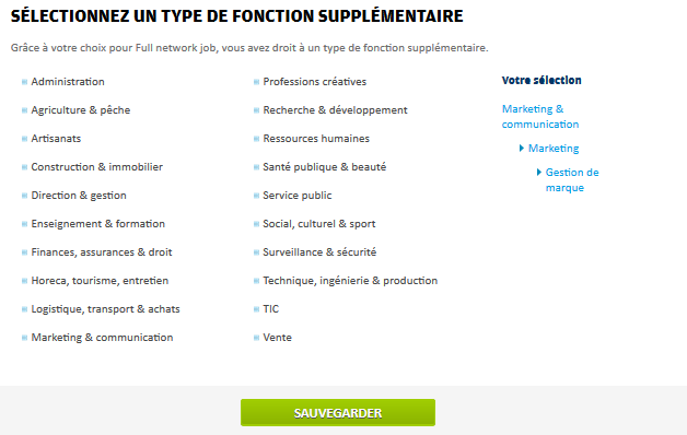Comment sélectionner le deuxième type de fonction chez une offre en Full Network ?